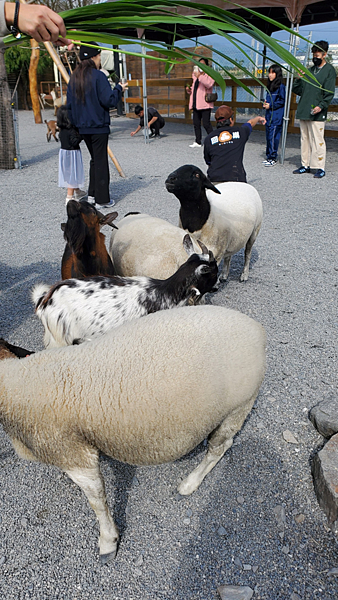 種誇張的是~~~謝老闆竟然趁我不注意的時候,被羊群搶食完畢耶~~~